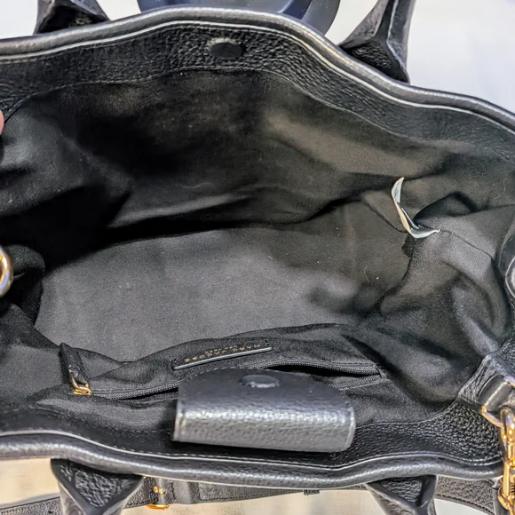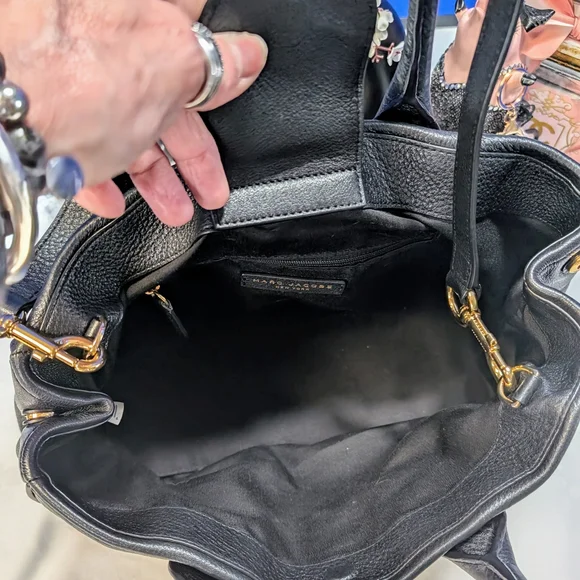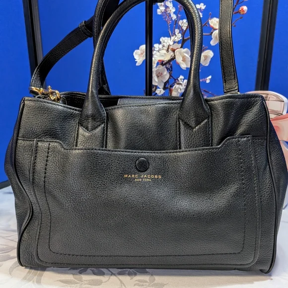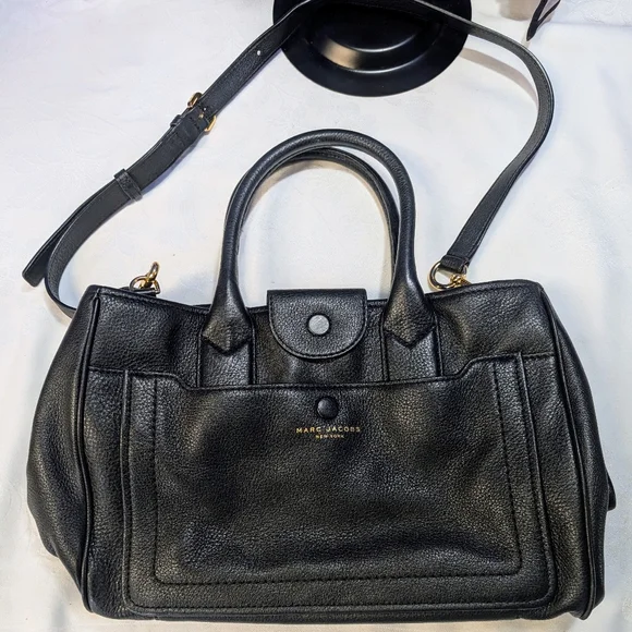 EUC!This bag has no call outs that I can find.She is clean and prestine 🔥 The Marc Jacobs Black Satchel Bag is a sophisticated accessory crafted from smooth leather, offering a timeless and versatile look. Its structured design and spacious main compartment make it ideal for both business and casual settings. The bag's elegant appearance is enhanced by subtle hardware details, ensuring a high-quality finish.