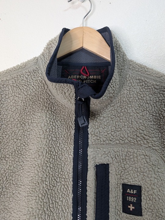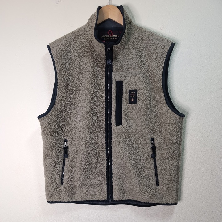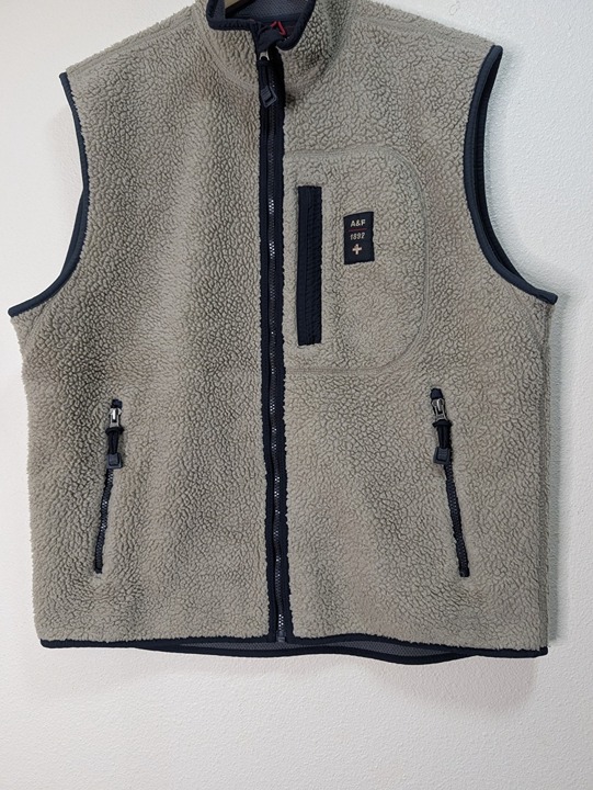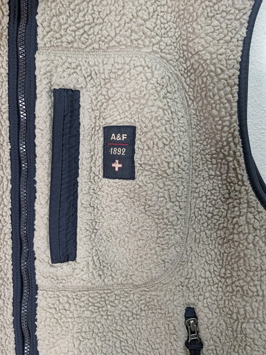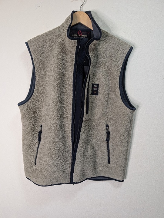 Abercrombie & Fitch vest, vintage fleece vest, Y2K outerwear, sherpa zip up, retro sherpa vest, 2000s fashion, utility fashion, grandpa aesthetic, winter street style, layering staple, neutral tone vest, preppy zip fleece